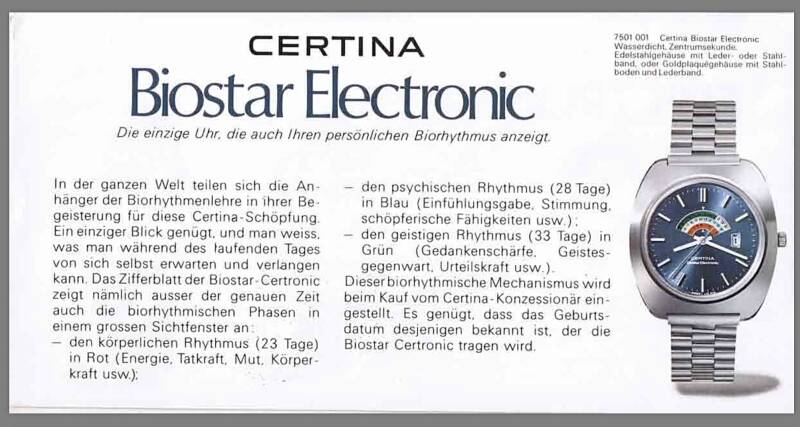 This model, which measures your biorhythm, is a worthy representation of the roaring 70's. During this decade there was a huge interest in mankind and his well-being. Certina invested in a wristwatch with an ideal fit to the anatomy of the hand, the Certina Revelation, and in the Certina Biostar.