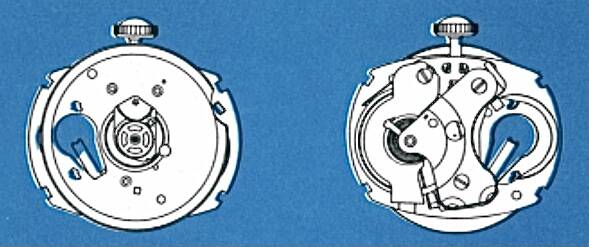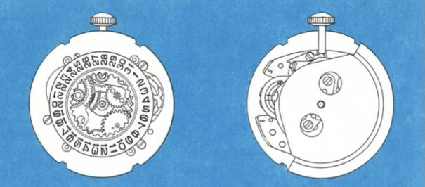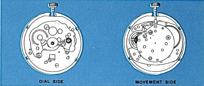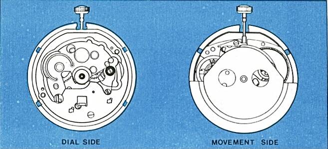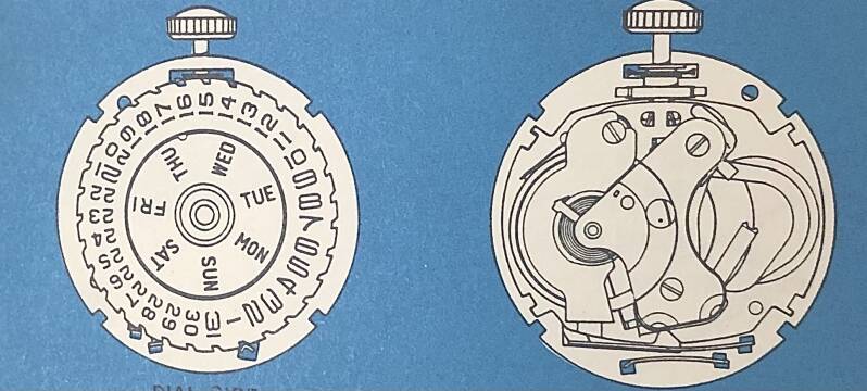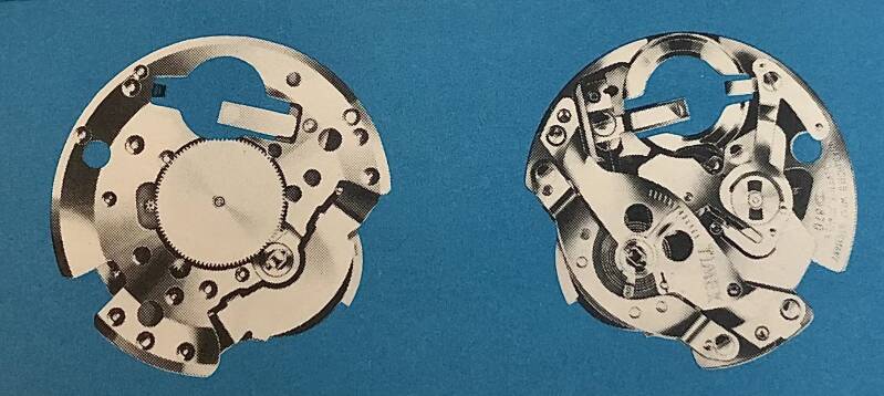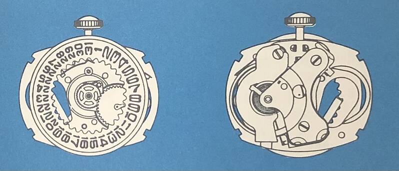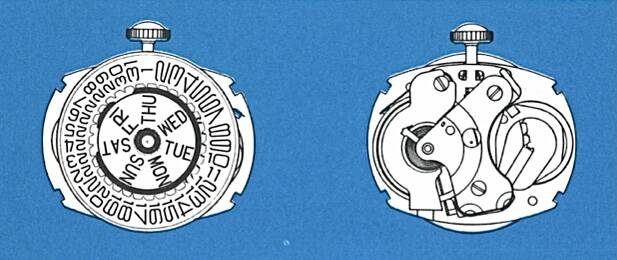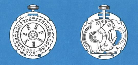 Off course, the same applies to TIMEX's movement change in 1978 as described earlier. The manual Model 104 formed the base movement for the new automatic movements Model 107 (time only), 108 (calendar) and 109 (day-date).