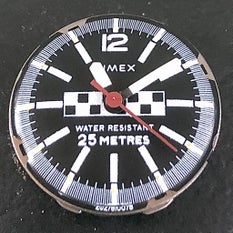In 1978 TIMEX released a new Marlin Sports watch with a horizontal chequered flag printed on the dial. The reference number 27675 carrying the TIMEX M105 hand winding movement has become a popular watch amongst collectors.