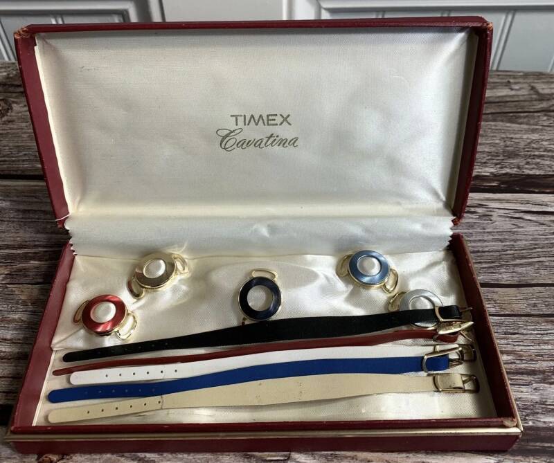 This a Dutch advert from 1974 where the TIMEX Colorama was presented. A ladies watch box containing one TIMEX Cavatina watch, four straps and four bezels in the colors white, blue, red and black. Depending on the occasion, you had 16 different ways to configurate your watch. Funnily they used the Kelton slogan in this ad. "When changing clothes ... change your Timex"