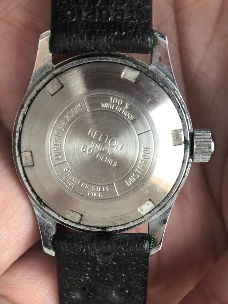 Apart from the difference in depth rate, there are other characteristics that distinguish both versions of this Skindiver model. The 600 feet model has an all stainless steel case and caseback whereas the 200 feet model has the usual chrome plated brass case with stainless steel caseback. Looking at the catalogs another marker stands out. The 600 feet model was equiped with a Tropic rubber strap that was air permeable. A very well known and much sought after diver strap for 60's dive watches in general. The 200 feet model has a non-branded more simple rubber bracelet.