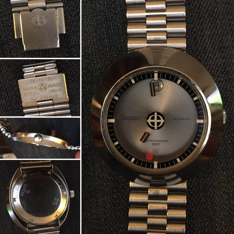 This 'Mystery Dial' Zodiac was first introduced in 1969 as SST Astrographic. It was available in two case styles, round and square. Their unique selling points were the floating batons for hours and minutes and the red dot as sweep seconds hand. Very 70's. The floating hands were created by the use of 3 transparent discs. Some sort of extraterrestrial experience.